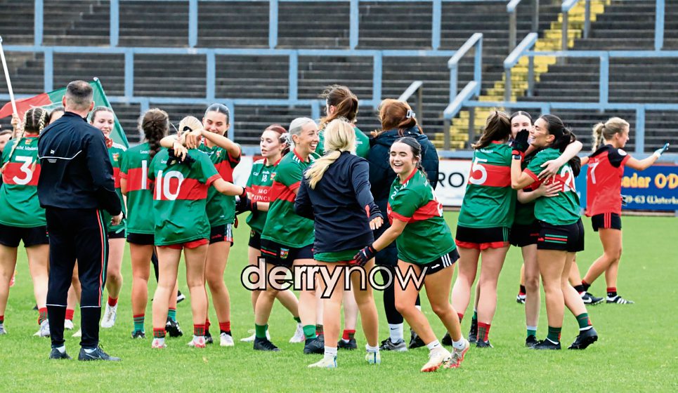 Slaughtmanus' players celebrating winning the Ladies GAA JFC B final against Lissan at Celtic Park. (Photos - Tom Heaney, nwpresspics)