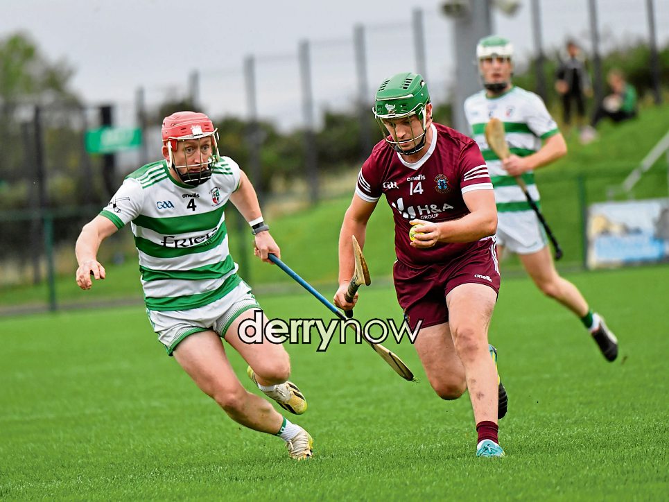 Sean Francis Quinn of Swatragh tracks Ballinascreen’s Reece McSorley.