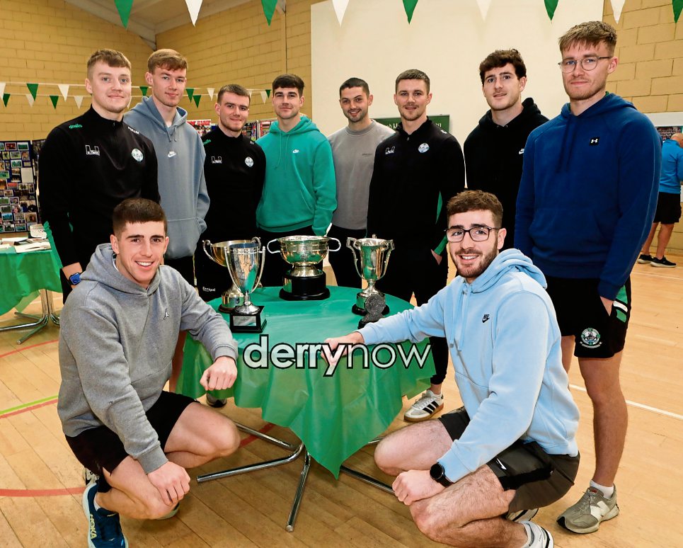 Current senior champs, Newbridge GAC Senior footballers with the John McLaughlin Cup.