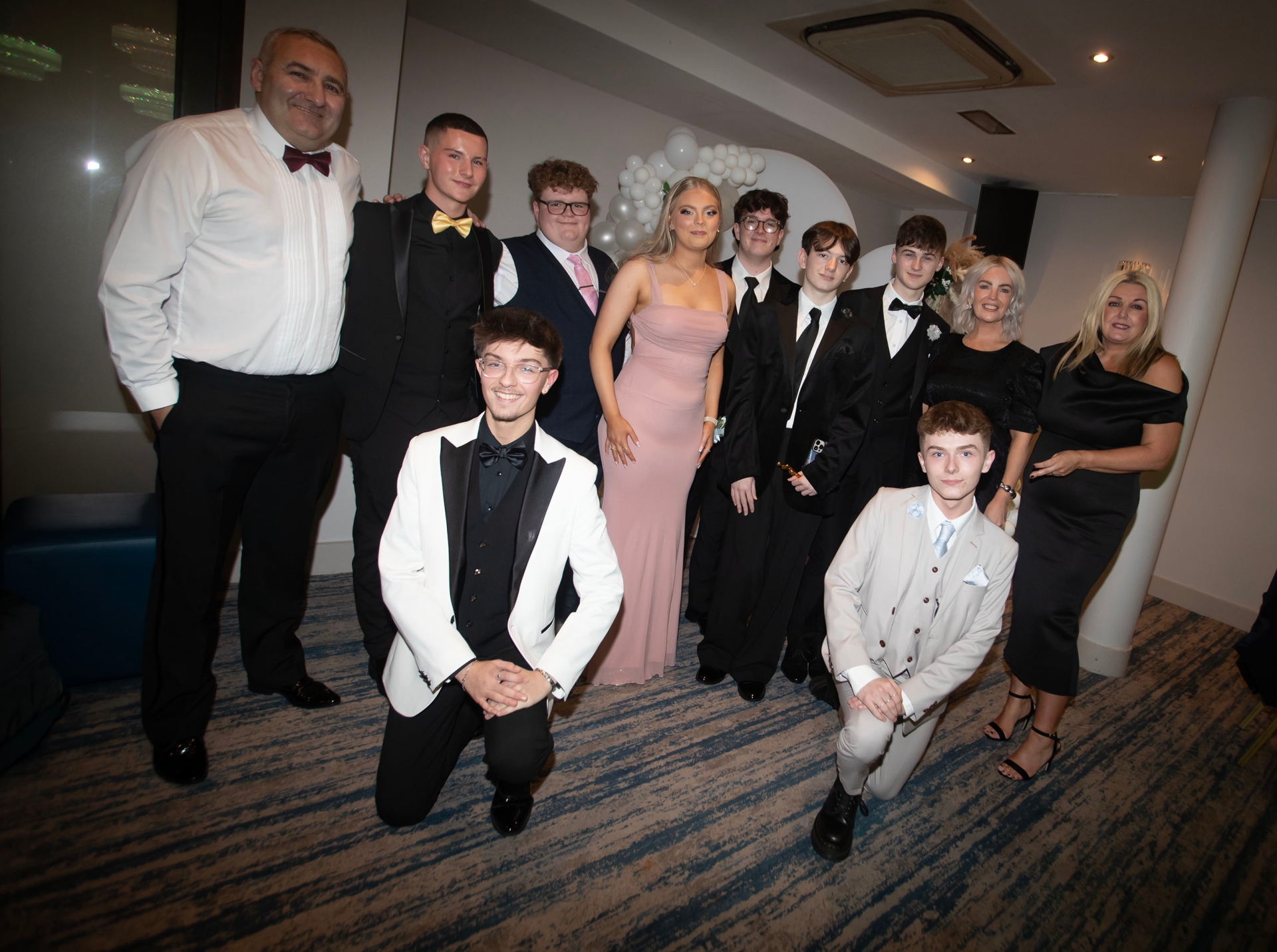 Mrs. Ciara Deane, Principal, St. Joseph's Boys School pictured with some of the staff and students at Friday night's formal in the Waterfoot Hotel, Derry. (Photos: Jim McCafferty Photography)