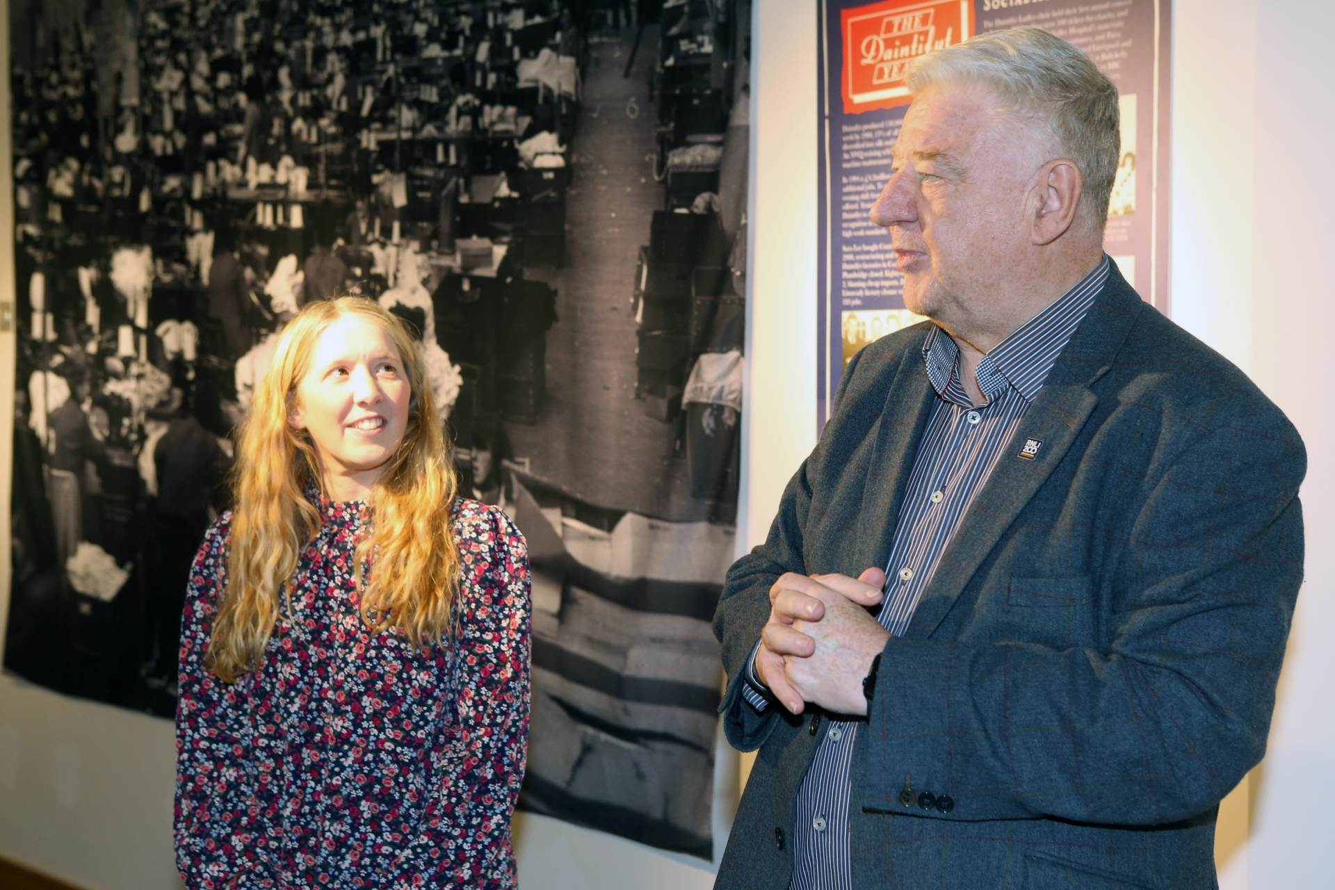 Museum Officer Jamie Austin and Councillor Steven Callaghan at the launch of ‘The Daintifyt Years’ exhibition in Roe Valley Arts & Cultural Centre.