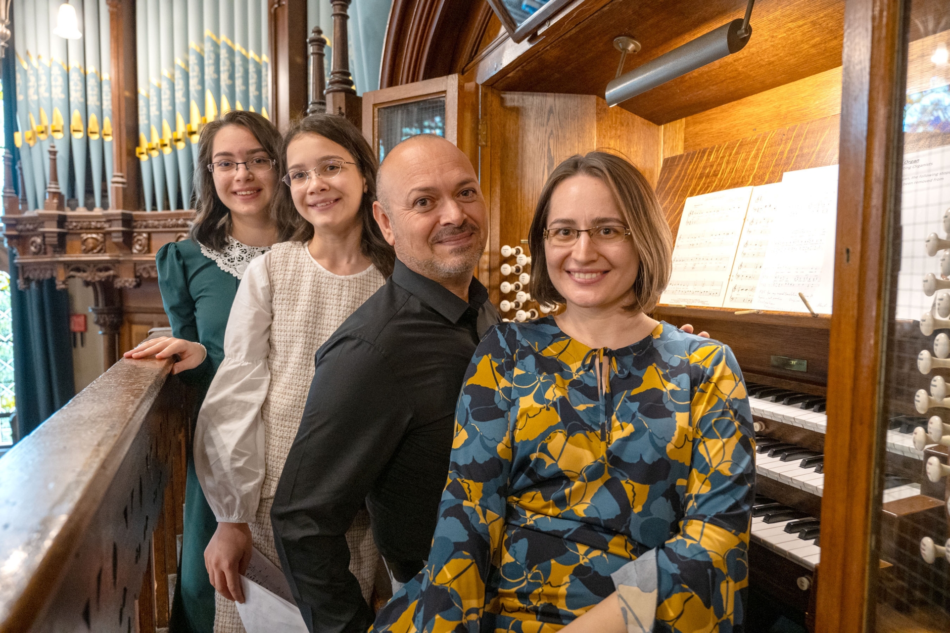 Alderman Niree McMorris has hosted a reception for Pastor Constantin Ciuculescu and his family from the Helping Hands Ministries and local representatives lead by Pastor David Baxter from Bready. During the visit to the Guildhall pictured with Pastor Constantin’ are his wife Irina and children Miriam who sang Amazing Grace accompanied by her sister Lisa, who played the famous organ in the Guildhall. (Photos: Martin McKeown)
