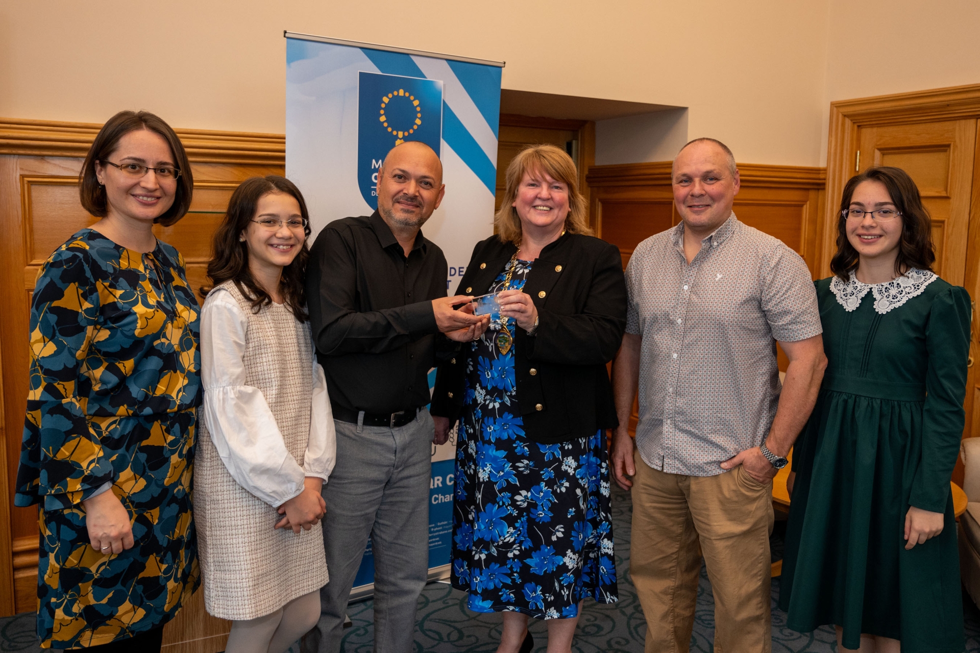 Alderman Niree McMorris has hosted a reception for Pastor Constantin Ciuculescu from Romania and his wife Irina with their children Lisa and Miriam, right and Pastor David Baxter from the Helping Hands Ministries.