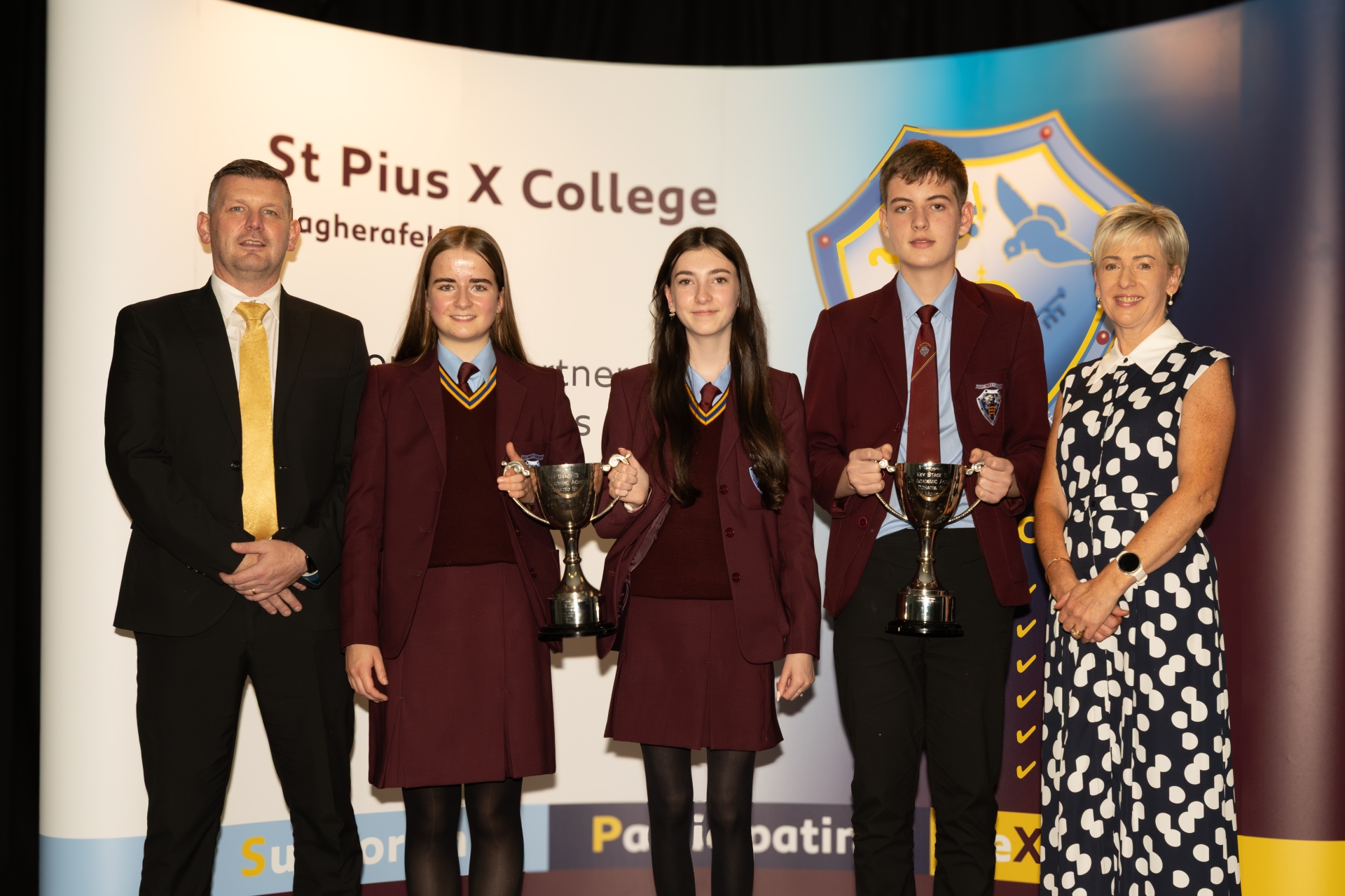 The Top KS3 Academic Achievers: Katherine, Iona and Thomas with Mr S Doyle (VP) and Mrs McCann (KS3 co-ordinator)