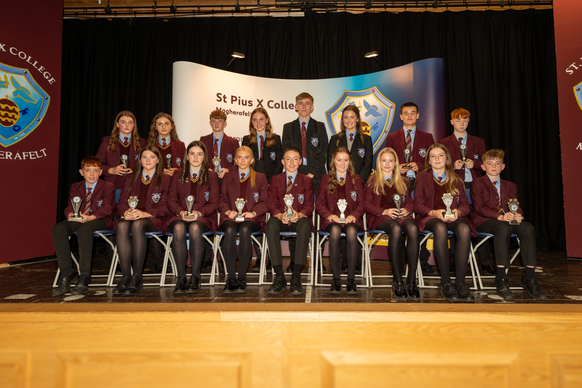Player of the Year and Most Improved Players for St Pius X College Teams. Tomás, Daniel, Jessica, Aoife, Casey Musgrave, Keeva, Leo, Daniel, Ciaran, Curtis, Lucy, Aoife, Cammie and Shileigha with College Team Captains Eoghan, Aine and Hannah.