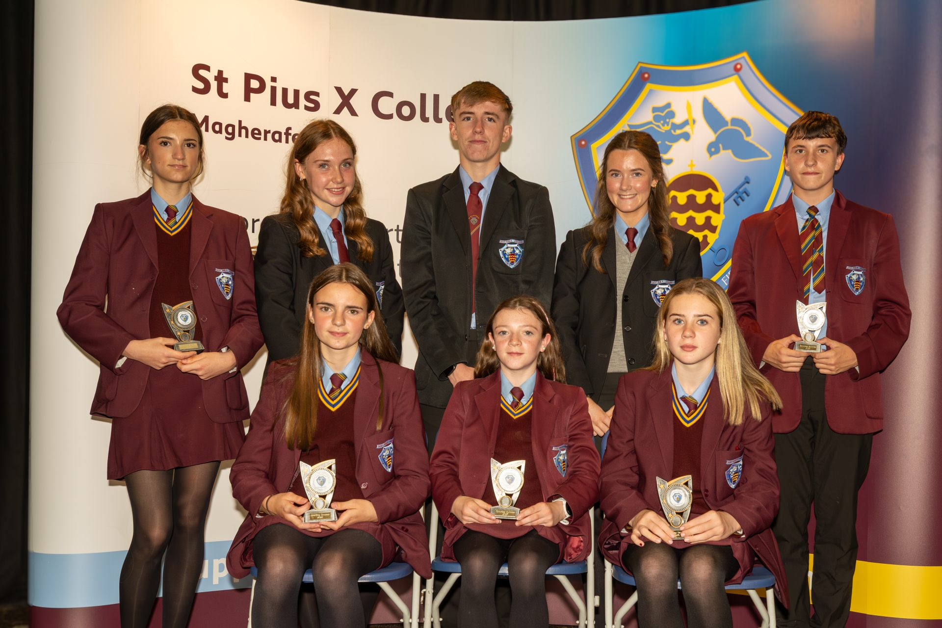 Clodagh, Rhiannon, Casey, Aine & Ryan received Sporting Awards for Athletics. They are pictured with our College Captains: Hannah, Aine & Eoghan