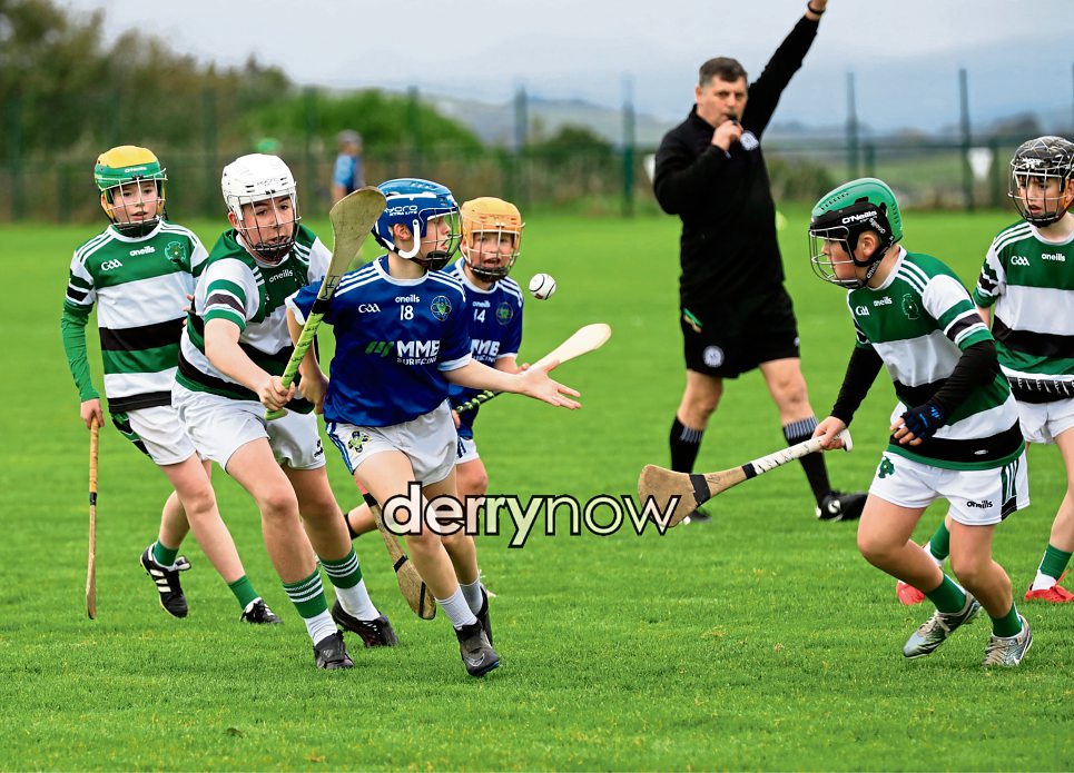 Action from the Na Magha v Sir na Nog game in the “The Martin McGuinness Chieftain Gaelic Games”.