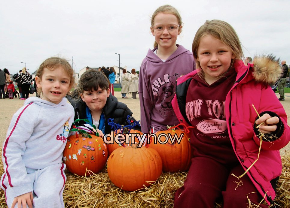 Kacie, Caleb, Kyla and Chloe with their decorated pumpkins.