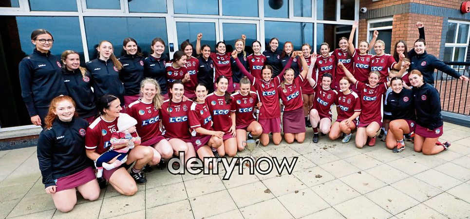 Slaughtneil ladies team celebrate winning the Senior Camogie Championship, beating Swatragh in the final at St Colm's Ballinascreen GAC on Saturday.