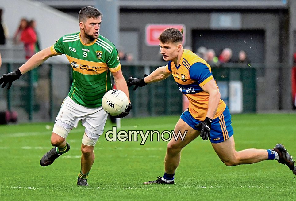 Eoghan Duffy of Foreglen's evades a tackle from Limavady's Darragh Deehan.
