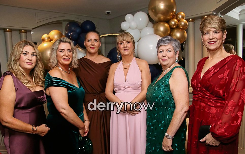 Pictured at Foyle Hospice's 40th Anniversary Charity Ball held in The Everglades Hotel are, from left, Rena Duffy, Paula Mullan, Eileen Jackson, Cathy McGuinness, Nora Carton and Shiela Duffy.