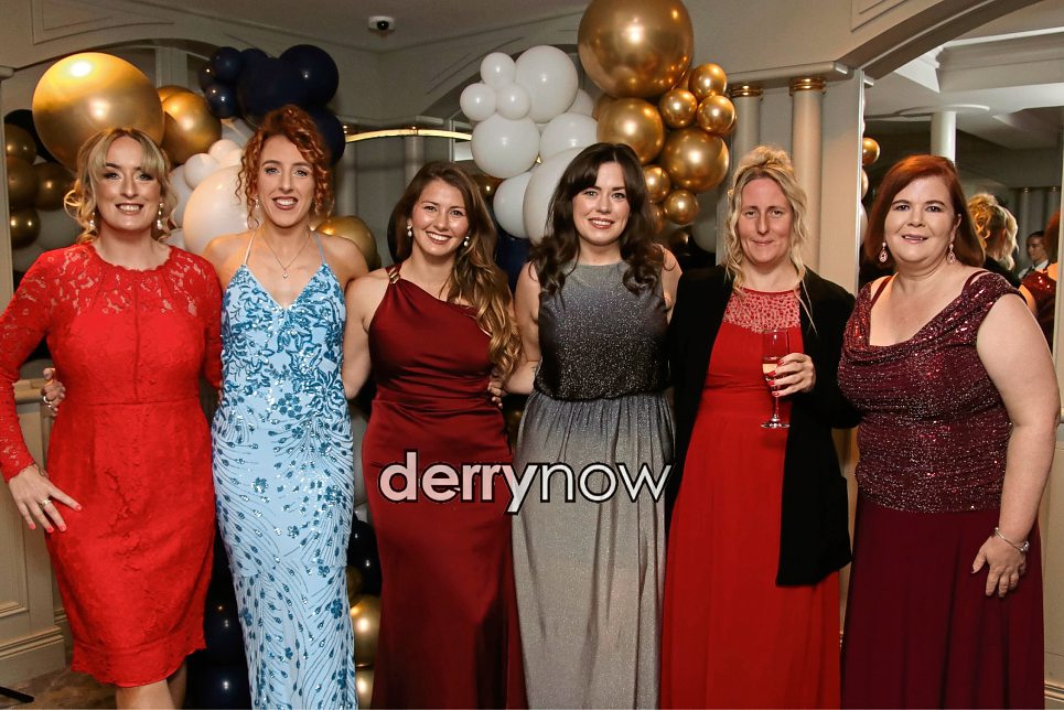 Group pictured at Foyle Hospice 40th Anniversary Ball. From left, Debbie Kelly, Amy Kelly, Cassie Jane, Amy McDonald, Shirley McClean and Lucy Macey. (Photos - Deirdre Heaney, nwpresspics)