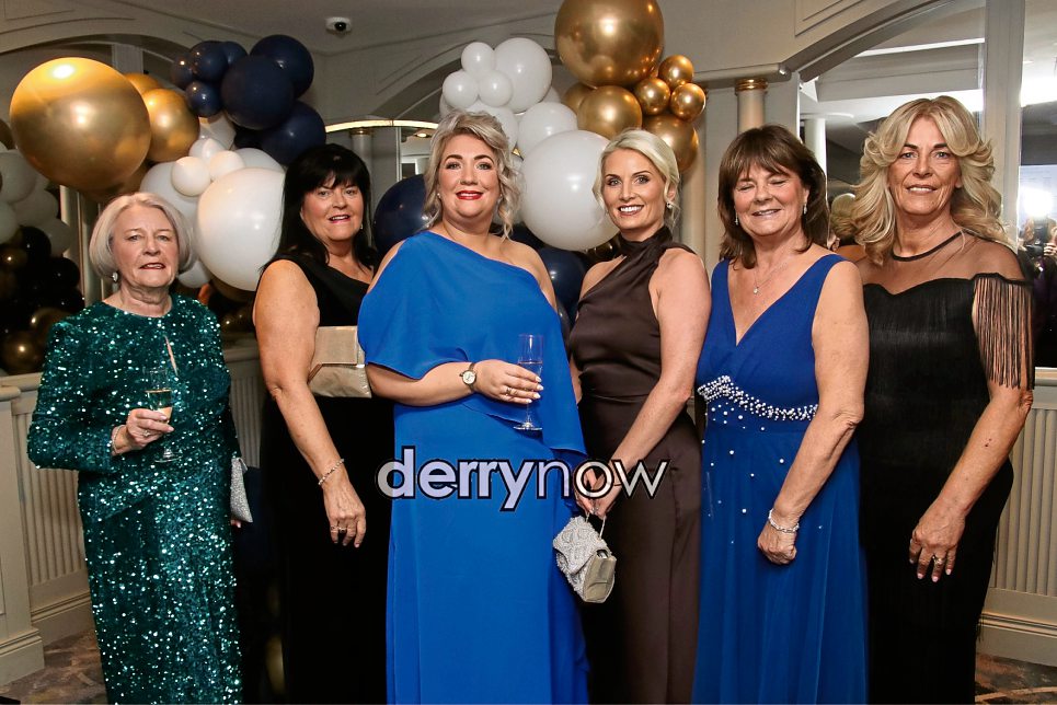 Pictured at Foyle Hospice's 40th Anniversary Charity Ball held in The Everglades Hotel are, from left, Breege McNutt, Claire McDonald, Ailbhe McDaid, Andrena Arbuckle, Margaret Burns and Michelle McCloskey.