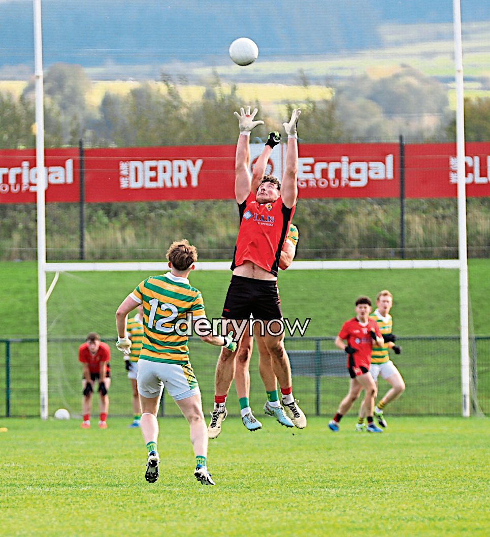 Glenullin’s v. Greenlough action in the Derry Intermediate Football Championship semi-final at Owenbeg.