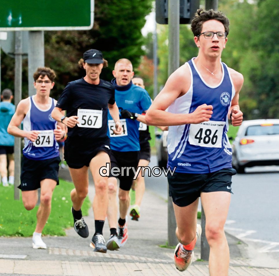 Foyle Valley AC runner Darragh Mooney (4th place) leading this group of runners.