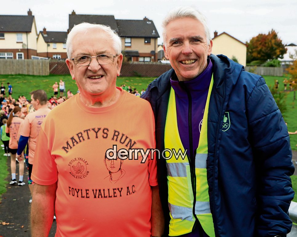Martin Gallagher with race marshal Sean Molloy (Foyle Valley AC) (Photos - Tom Heaney, nwpresspics)