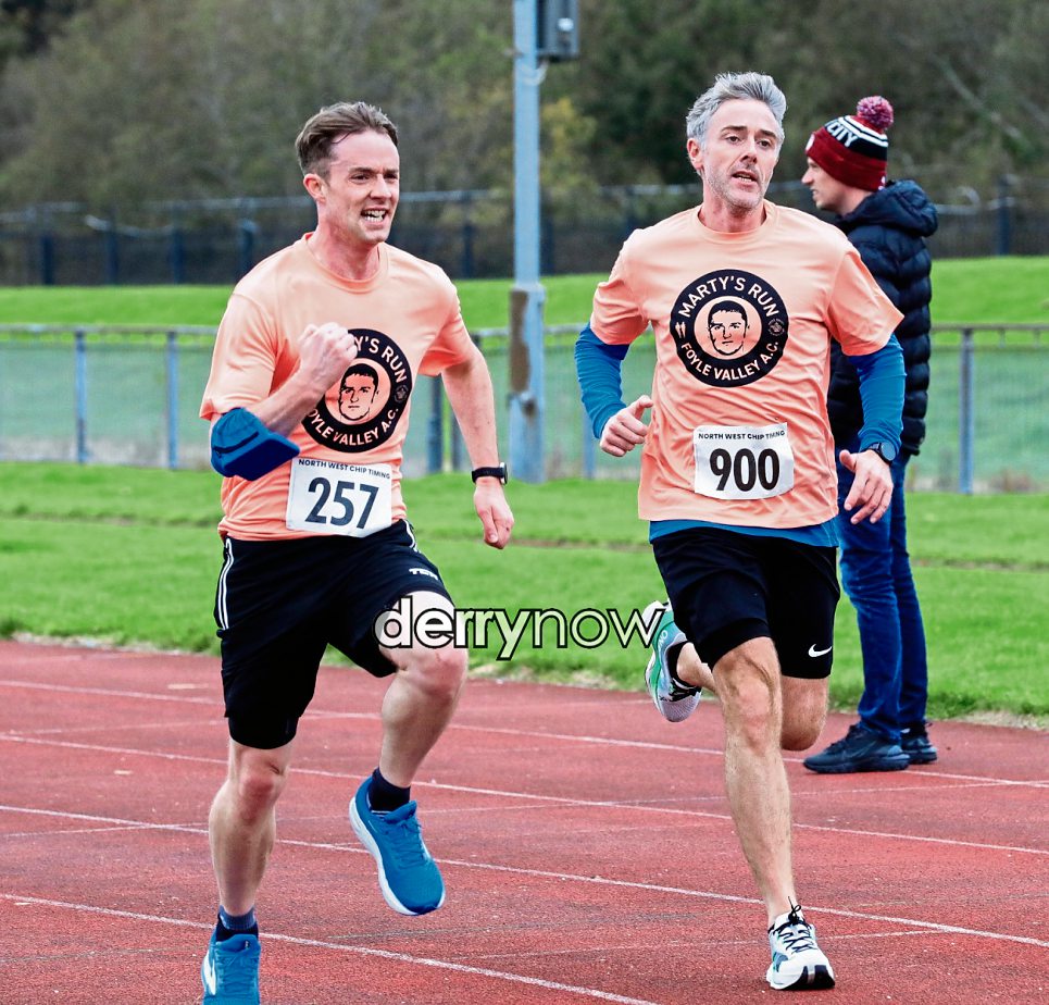Tom Cosgsrove (257) and Ian Gallagher (900) in a race to the finish line.