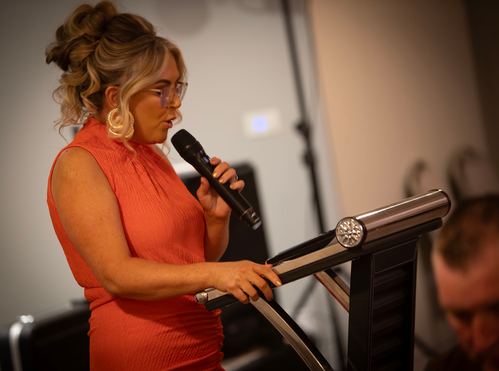 CNP manager Danielle Devine, addressing the attendance at Saturday night's anniversary celebrations.