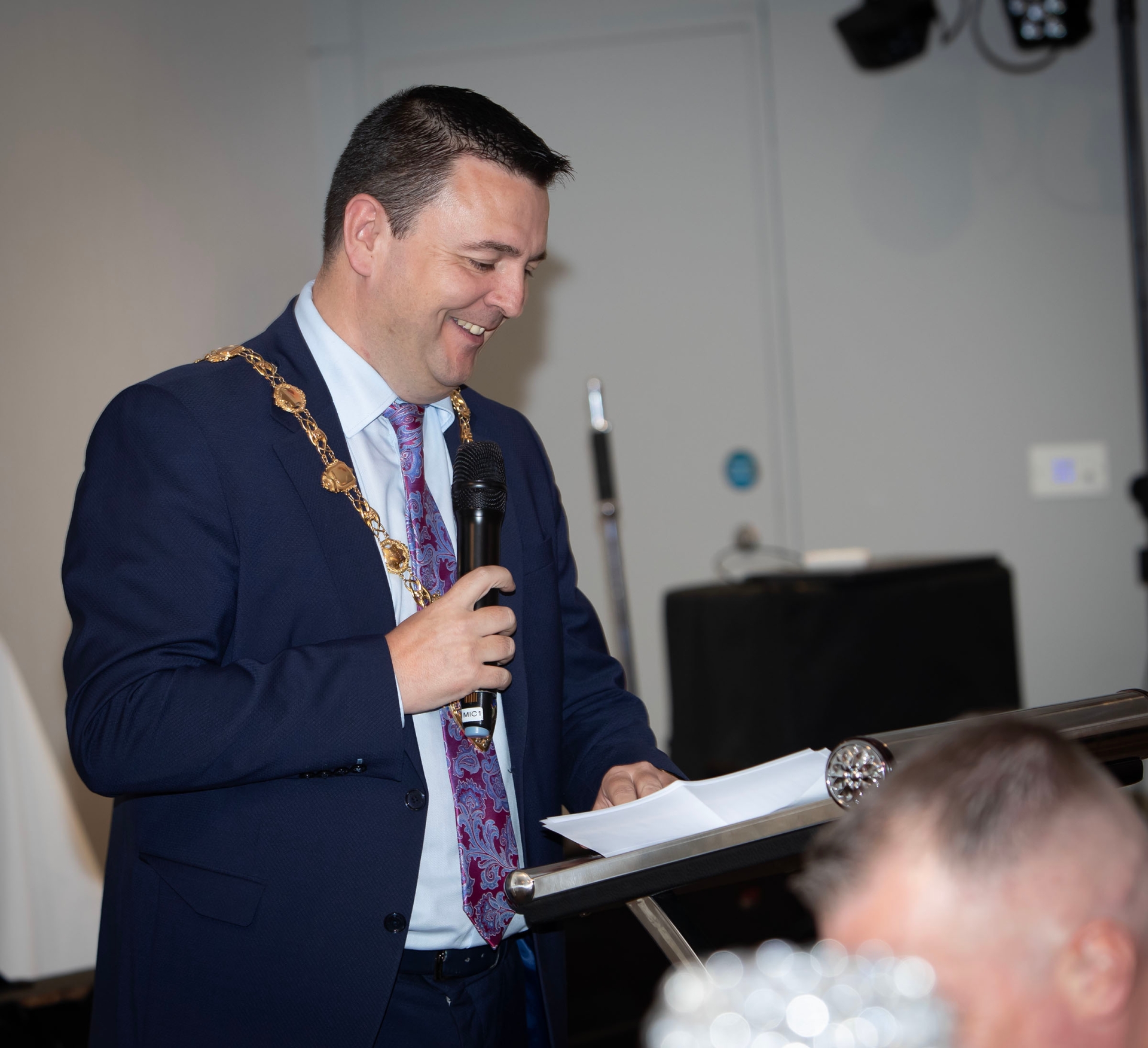 The Mayor of Derry City and Strabane District Council, Ruairi McHugh, addressing the attendance at Saturday night's anniversary celebrations.