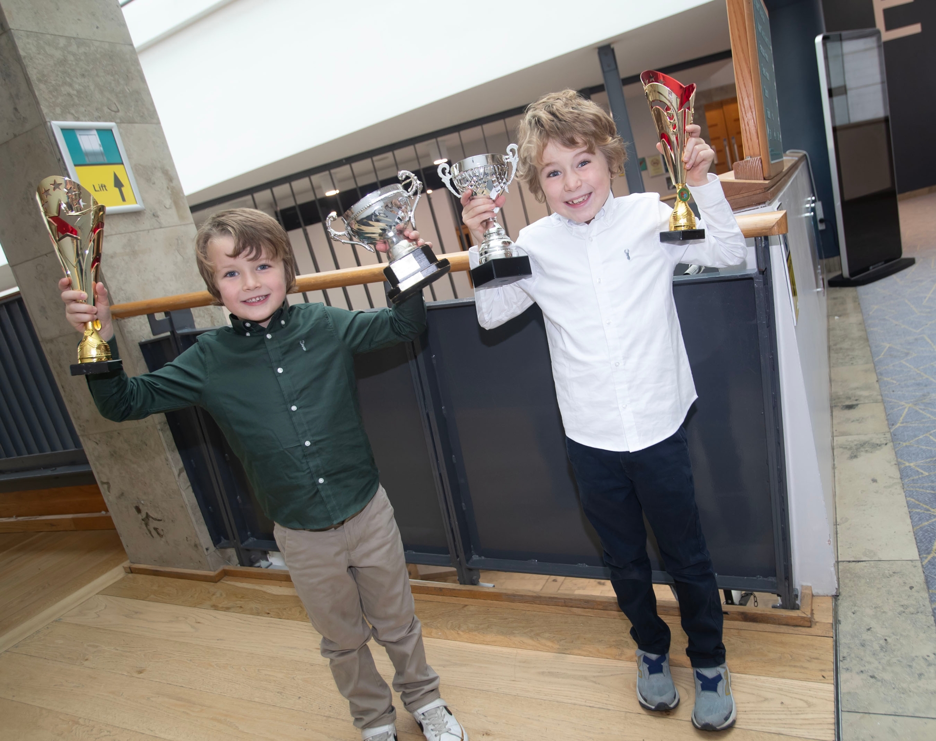 Two young brothers celebrating success at Saturday's Feis in the Millennium Forum.