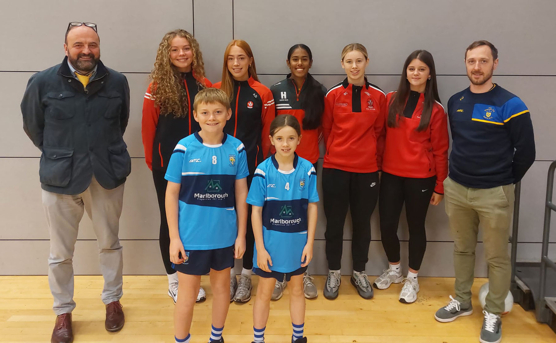 Pictured at Friday's event in the Foyle Arena are Mr. Feargal Friel, Principal, Hollybush PS and some of his former pupils - Ellen Mc Ardle, Annie Duffy, Mansi Bhavsar, Shannon Charlesworth and Anna Meehan. Included is Neil Forrester and at front, present pupils Oisin Coyle and Faye Helferty.