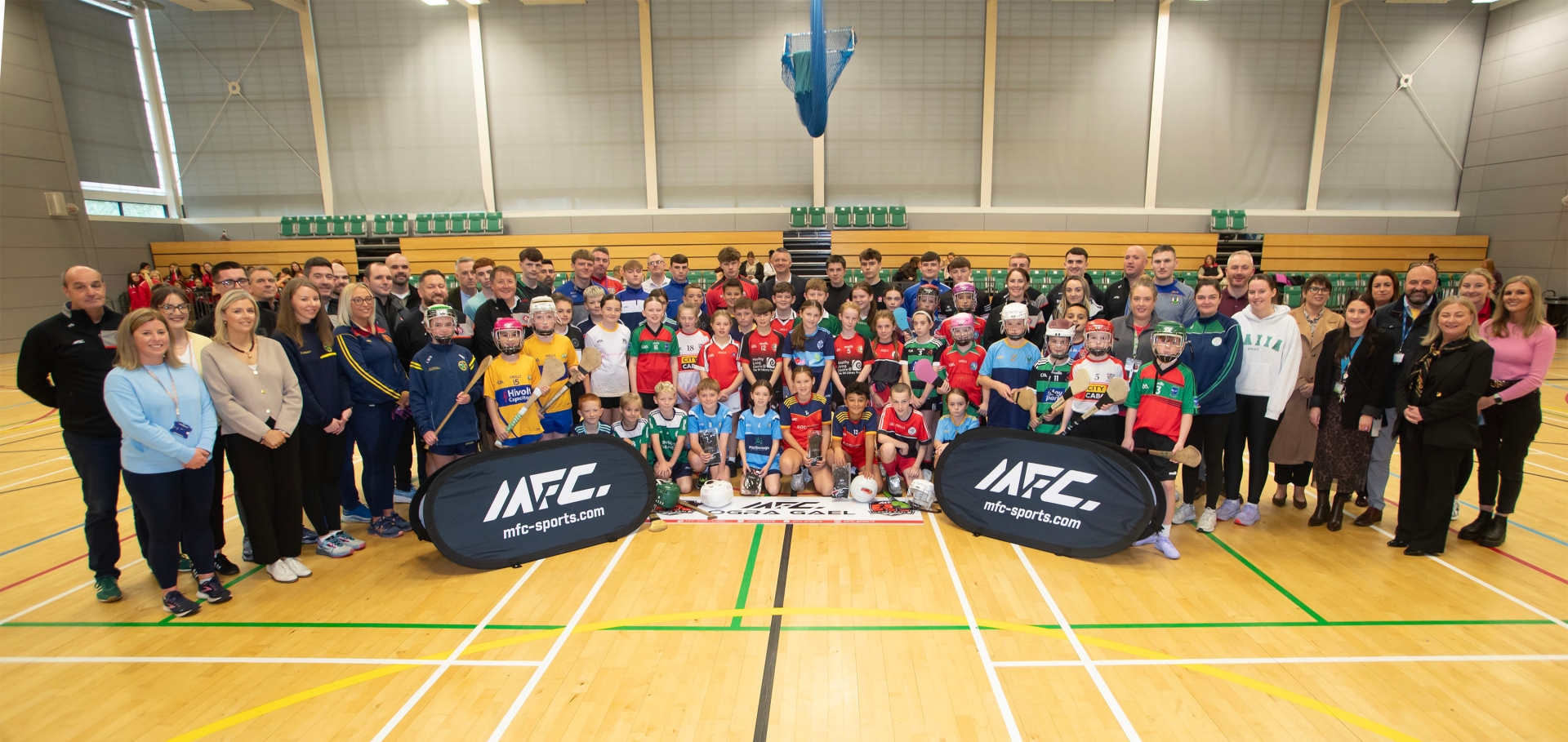 Group pictured at the launch of the MFC's Ogra Gael Investment Initiative in Primary Schools Gaelic Games in the city, held at the Foyle Arena on Friday afternoon.