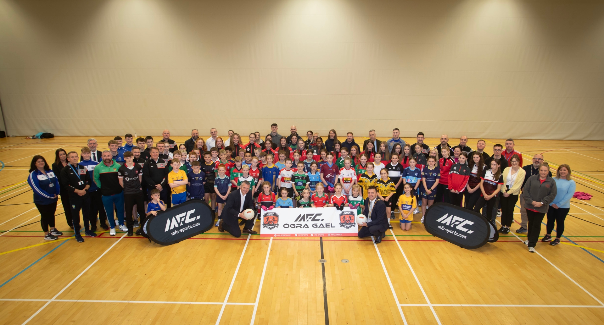 The Mayor, Ruairi McHugh and County Board CEO Stephen Barker pictured at the launch of the MFC's Ogra Gael Investment Initiative in Primary Schools Gaelic Games in the city, held at the Foyle Arena on Friday afternoon. (Photos: Jim McCafferty Photography)