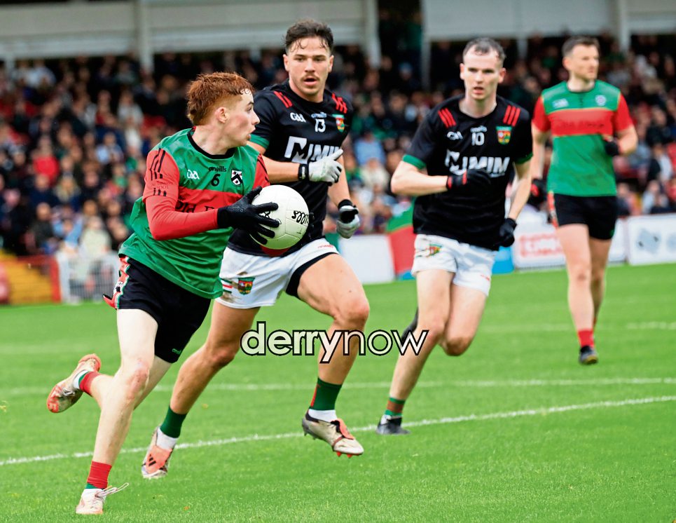 Doire Trasna’s Conor O’Donnell prepares to grab the ball.