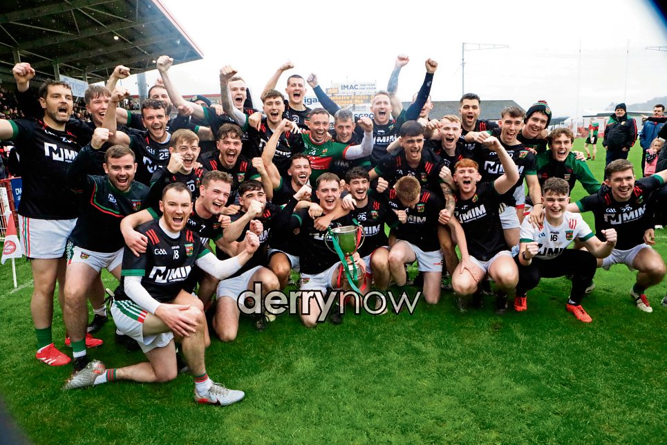 Slaughtmanus team celebrating winning the Premier Electrics Derry GAA Club Junior Championship final against Doire Trasna in Celtic Park on Sunday. (Photos - Tom Heaney, nwpresspics)