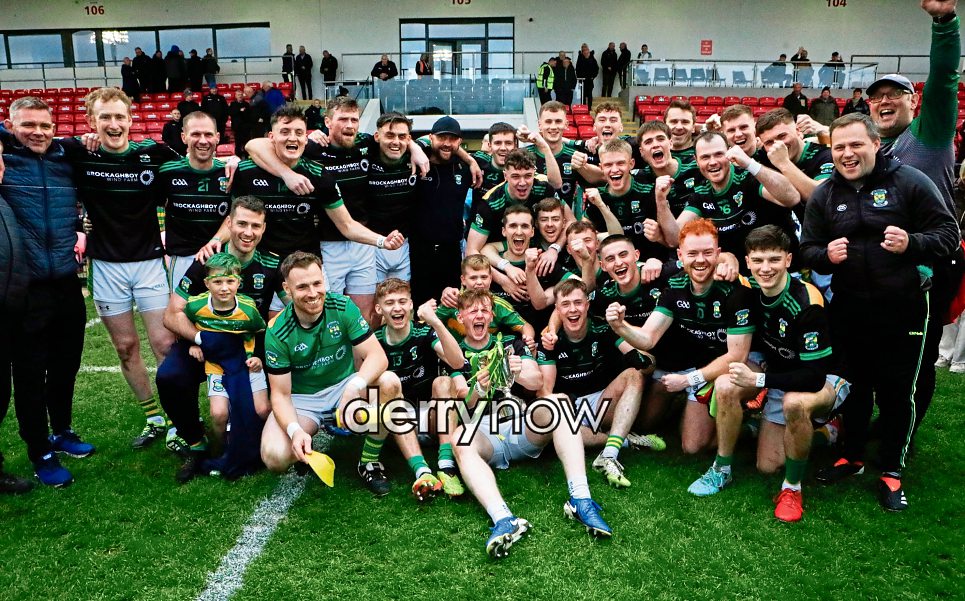 Glenullin team celebrating winning the McFeely Group Derry Club Intermediate Championship final.