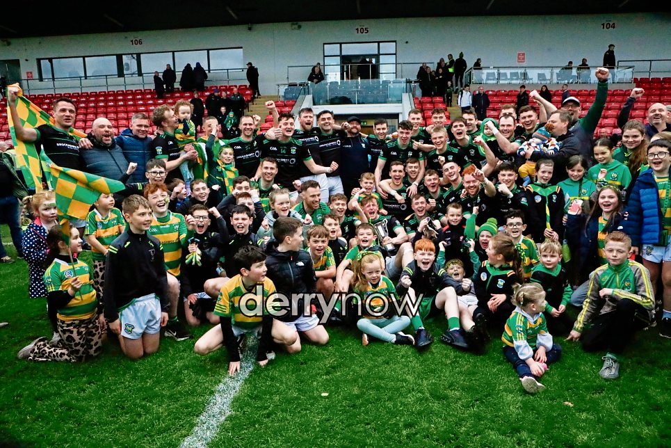 Glenullin team with young fans celebrating winning the McFeely Group Derry Club Intermediate Championship final against Foreglen at Owenbeg on Saturday. (Photos - Tom Heaney, nwpresspics)