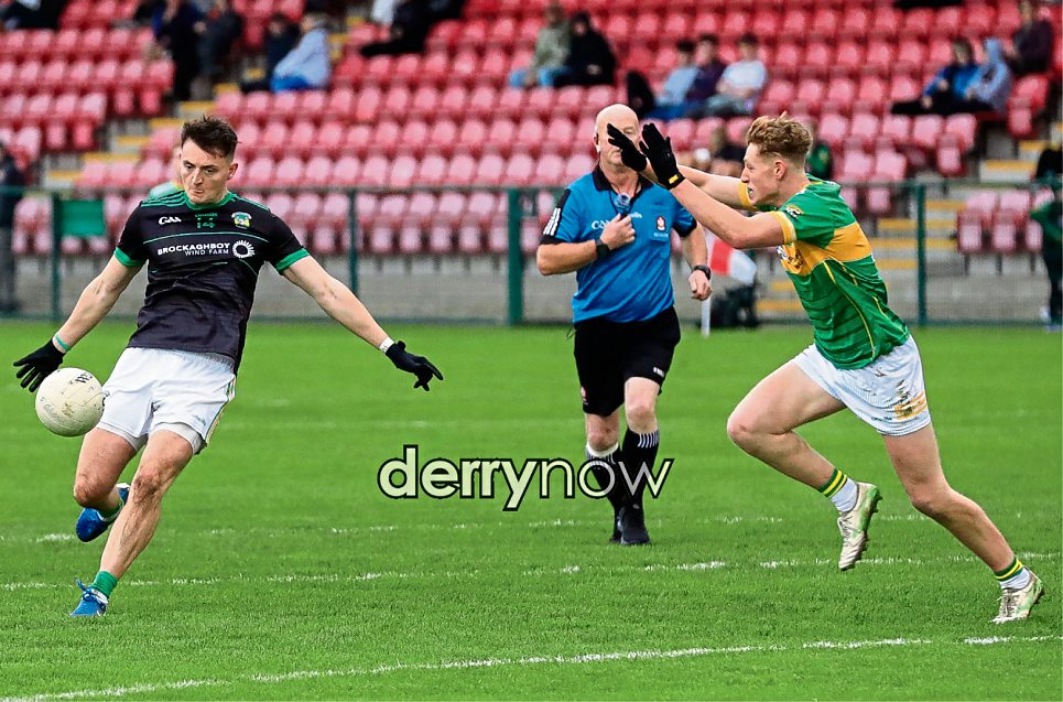Glenullin’s Donal O’Kane prepares to blast the ball towards the target.