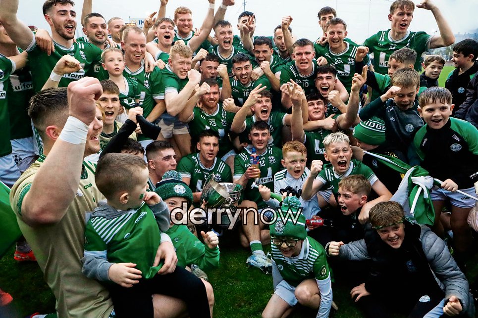 Newbridge team celebrating winning the O’Neill’s Derry GAA Club Senior Championship beating Magherafelt in the final in Celtic Park, on Sunday. (Photos - Tom Heaney, nwpresspics)