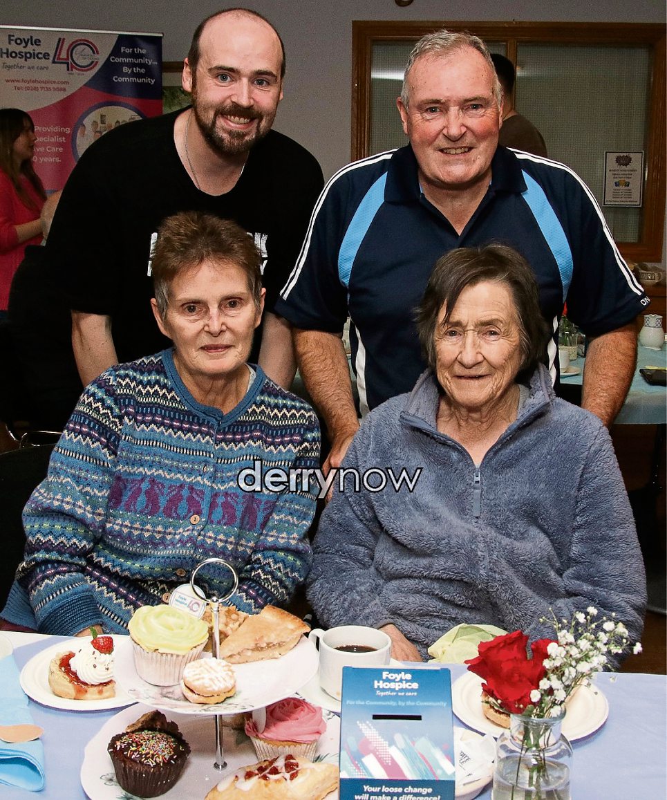 Elish O'Kane and Majella Higgins pictured with the two Robert Brennan's at The Foyle Hospice Coffee Morning. (Photos - Deirdre Heaney, nwpresspics)