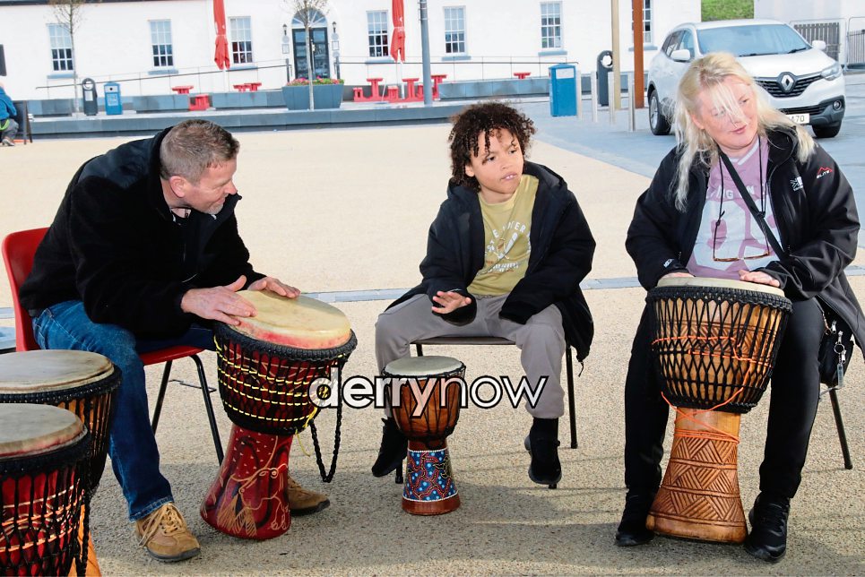 Drumming workshops held at Good Relations Week, Ebrington Square.