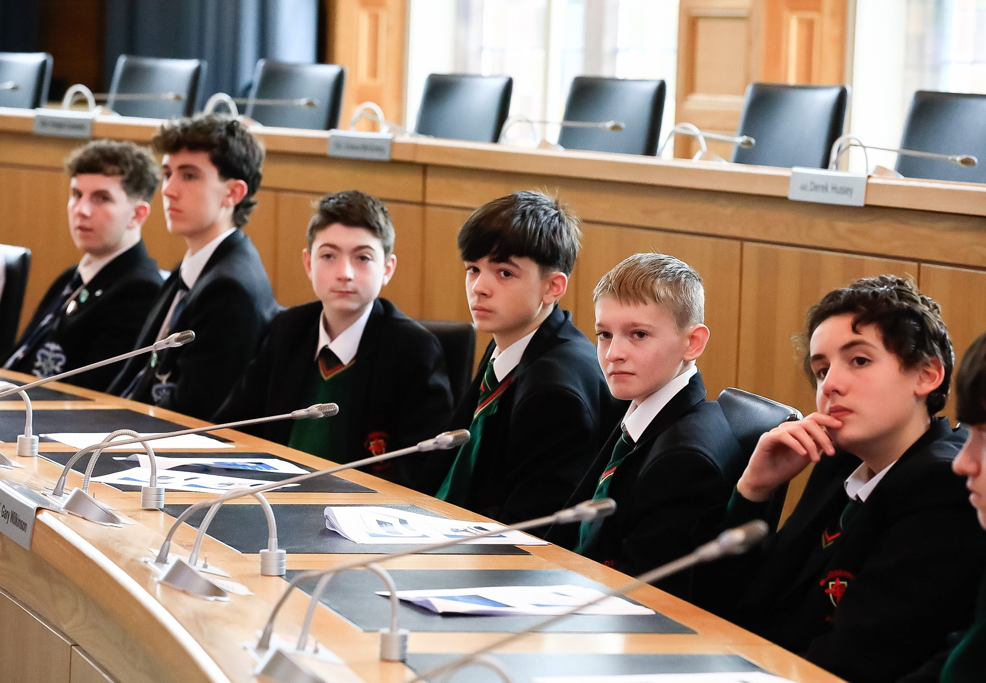 Students from St. Columb's College and St. Joseph's Boys' School who took part in the Local Democracy Week "Meet Your Councillors" held in the Derry City & Strabane District Council Chamber, Guildhall. (Photo - Tom Heaney, nwpresspics)