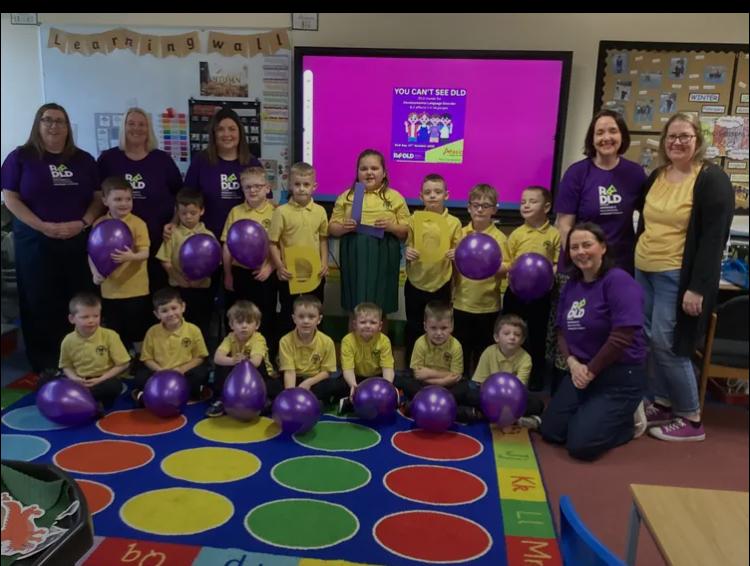 Staff and pupils at Ballykelly SLC celebrating DLD awareness day