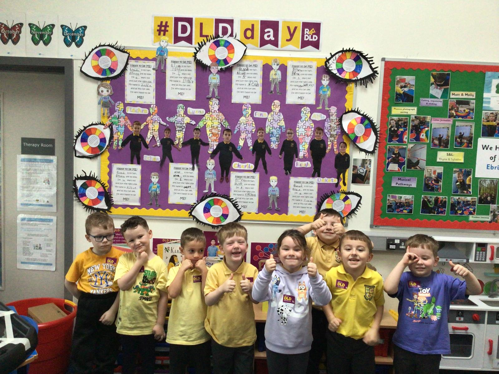 Children from Ebrington Speech and Language Class, Derry, celebrating DLD Day