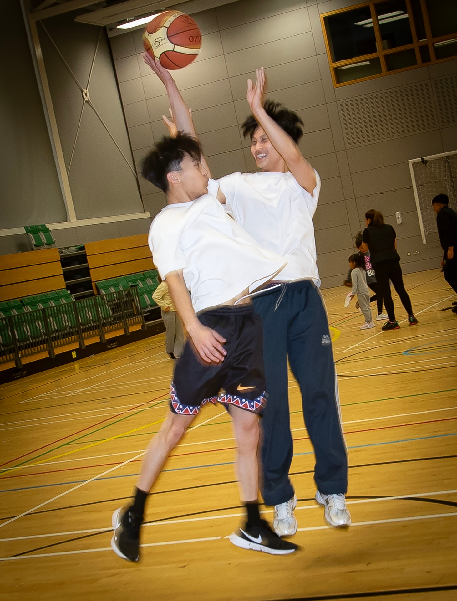 Basketball players Nakan Aquitania and Jerico Atos show off their basketball skills during Sunday's Games.