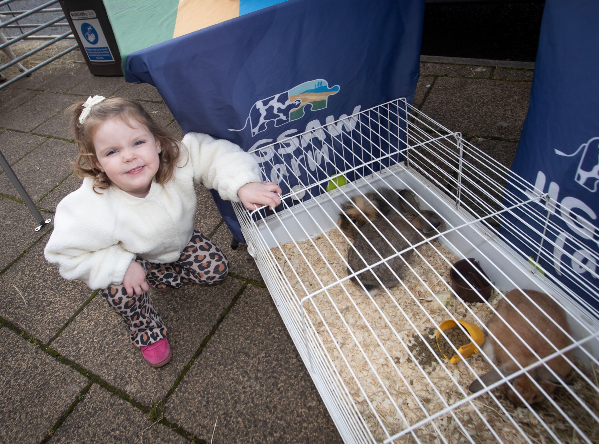 Having fun with the pet rabbits at the Jigsaw Farm stall during International Credit Union Day celebrations at Derry Credit Union on Saturday is 3 years old Emily Harrison-Brown. (Photos: Jim McCafferty Photography)