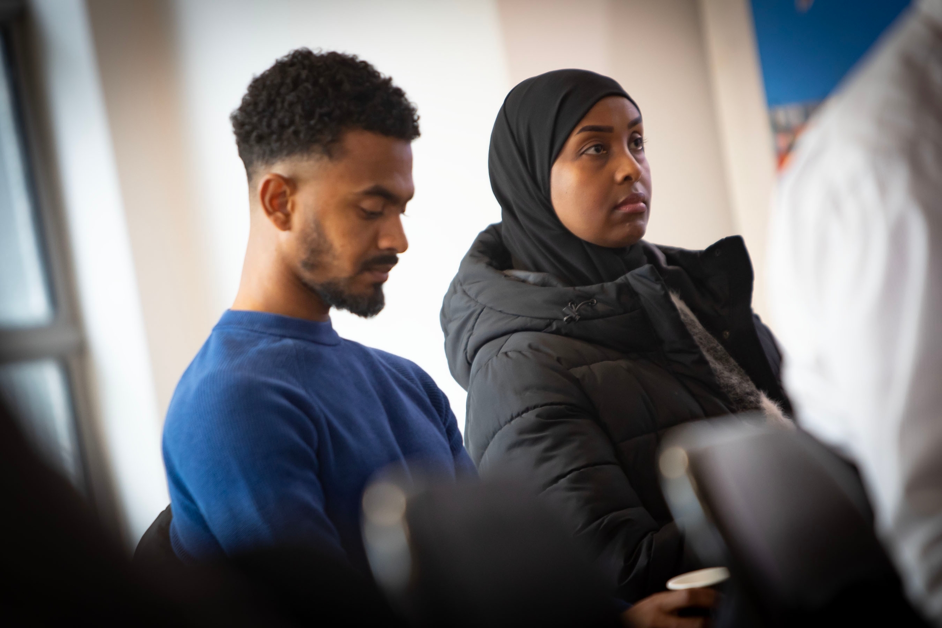 Some of the migrants in attendance at 'Did Ye Hear. . .? discussion in the Gasyard.