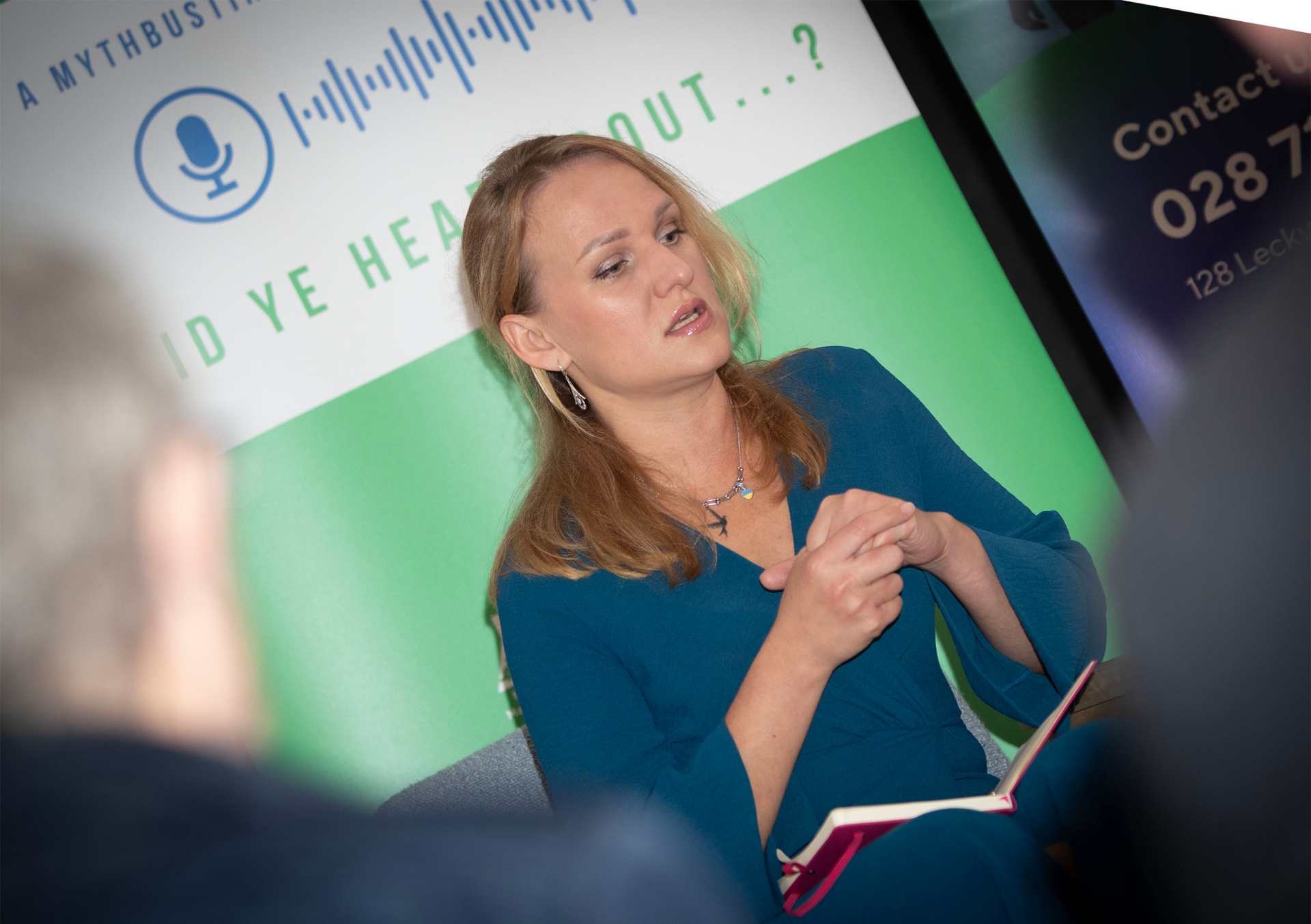 Ukranian refugee Anastasia Shevchenko addressing the attendance at 'Did Ye Hear About. . . .? discussion. (Photos: Jim McCafferty Photography)