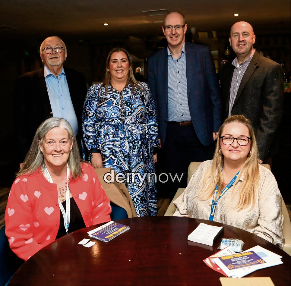 Group from the Western Health and Social Care Trust at “Chat Tea Ball” held in the Waterfoot Hotel. Standing, from left, Tom Frawley, Shona McEleney, Neil Guckian and Denis Armstsrong. Seated Caroline Stack and Áine McGuirk. (Photos - Tom Heaney, nwpresspics)