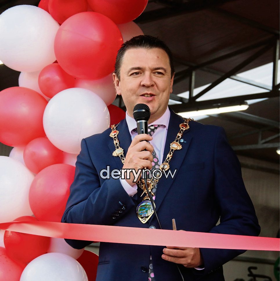 Mayor Ruairí McHugh speaking before cutting the ribbon to officially open Daíres Gym.
