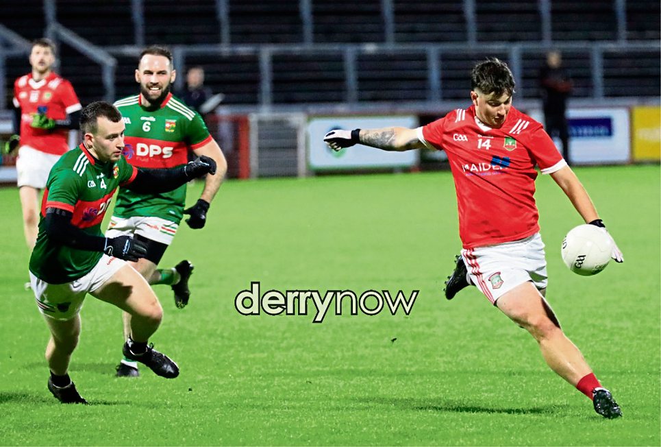 Sean Dolans Liam McNulty prepares to kick the ball towards the Slaughtmanus target.