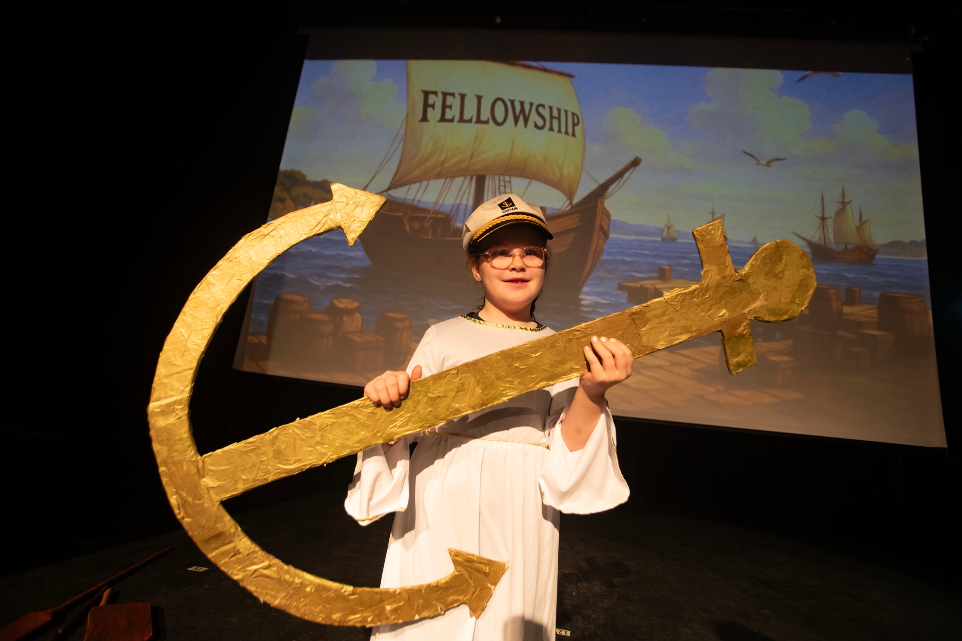 The Captain on stage during 'The Voyage of The Fellowship' production at the Playhouse, Derry on Friday.