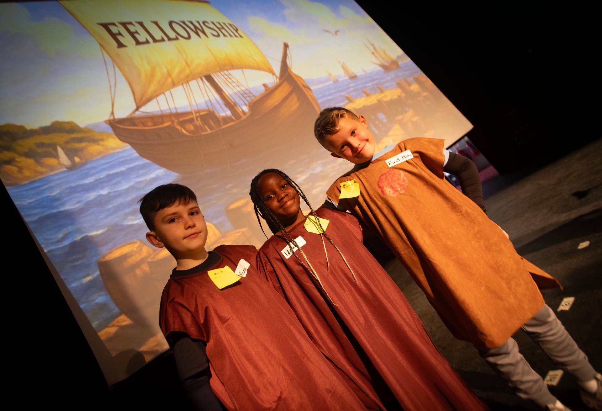 A number of the young actors from Long Tower and Fountain PS pictured on stage during Friday's production of 'The Voyage of the Fellowship.' (Photos: Jim McCafferty Photography)