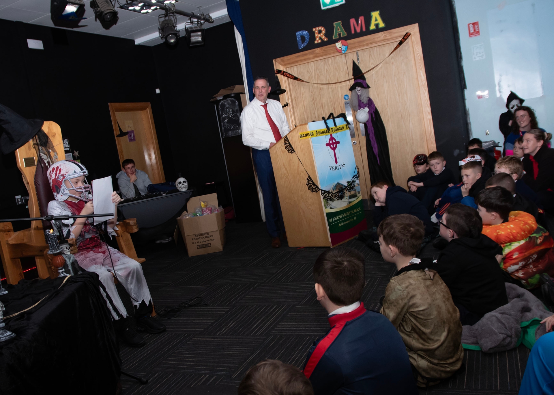 Year 8 pupil Noah holding court at the Spooker Prize on Thursday.