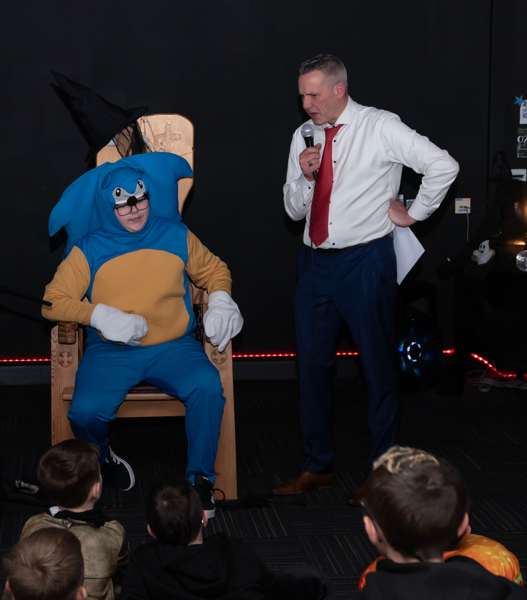 Year 8 student Darragh as Sonic being quizzed about his winning story Rap Rat.