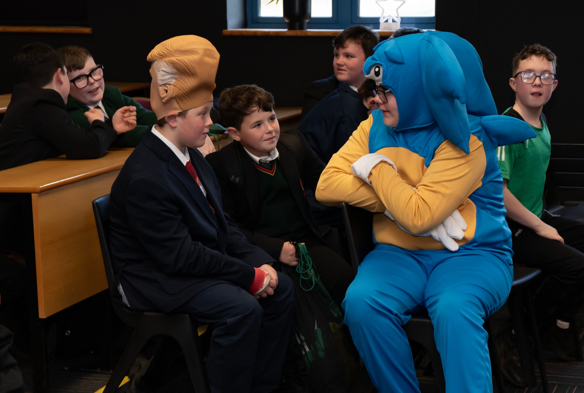 Students Darragh and Niall in discussion about their Spooker Prize story on Thursday at St. Joseph's.